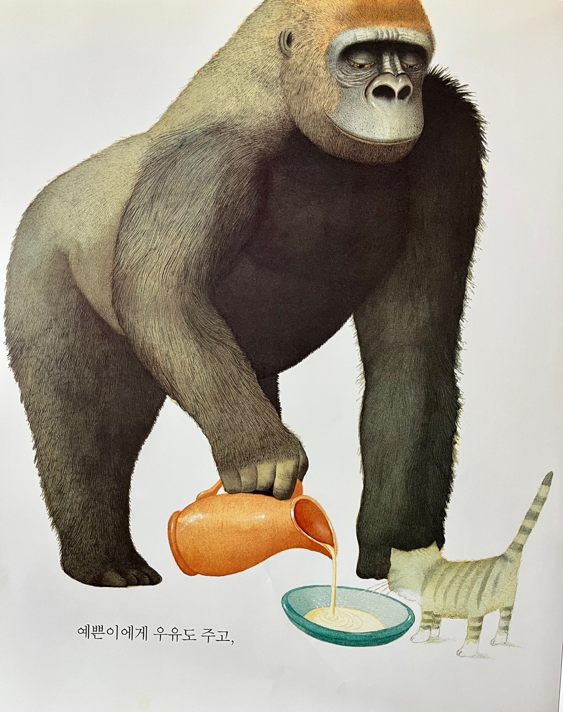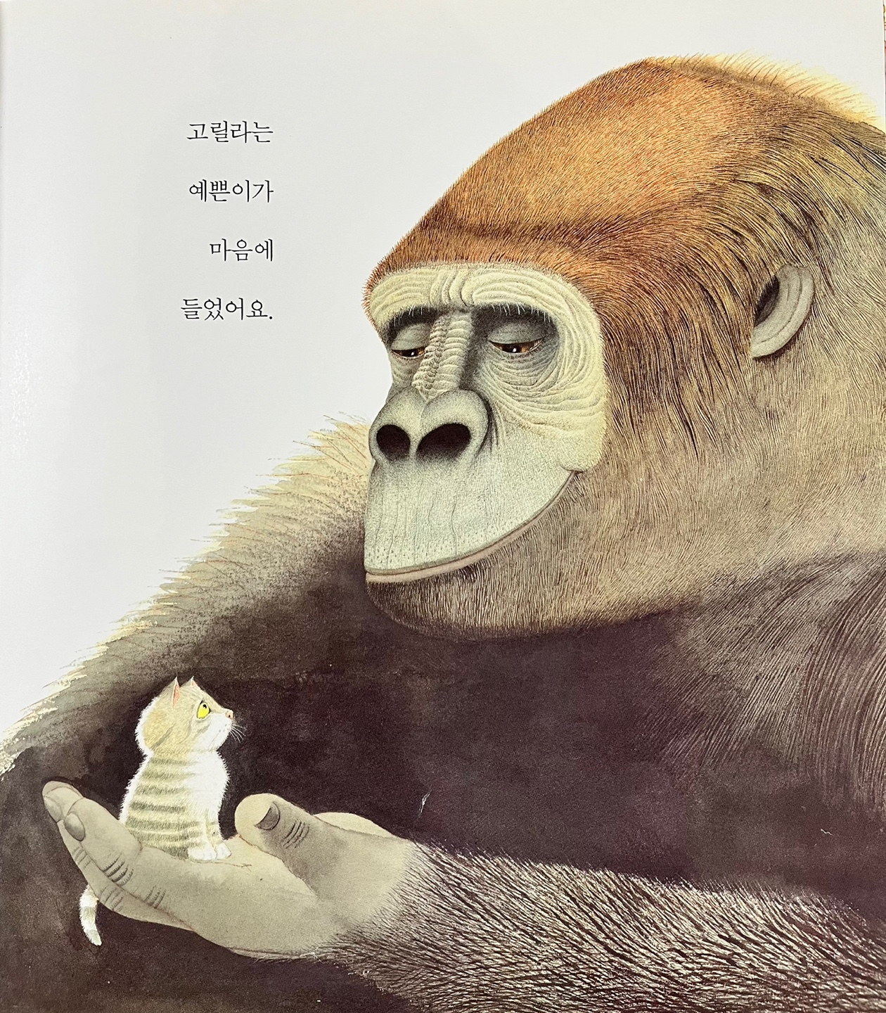 정말 다행히도 고릴라는 예쁜이라는 친구를 만났고, 더욱 다행히도 둘은 마음이 잘 통하는 친구였어요. 눈빛만 봐도 서로의 마음을 들여다 볼 수 있는 친구.