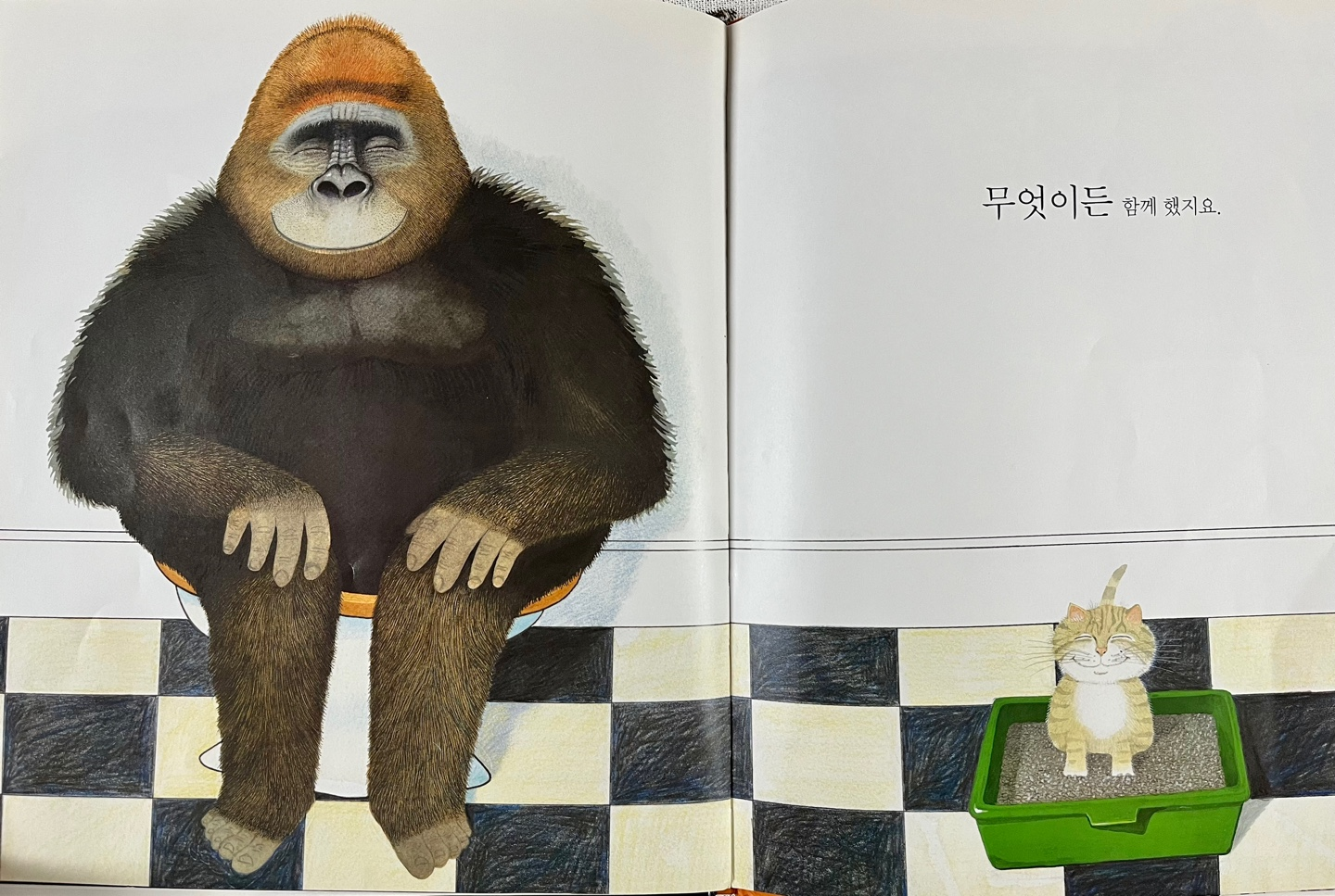 이후로 고릴라와 예쁜이는 이전처럼 모든 것을 함께하며 예쁜 우정을 쌓아갔어요. 해피엔딩!!👏👏👏