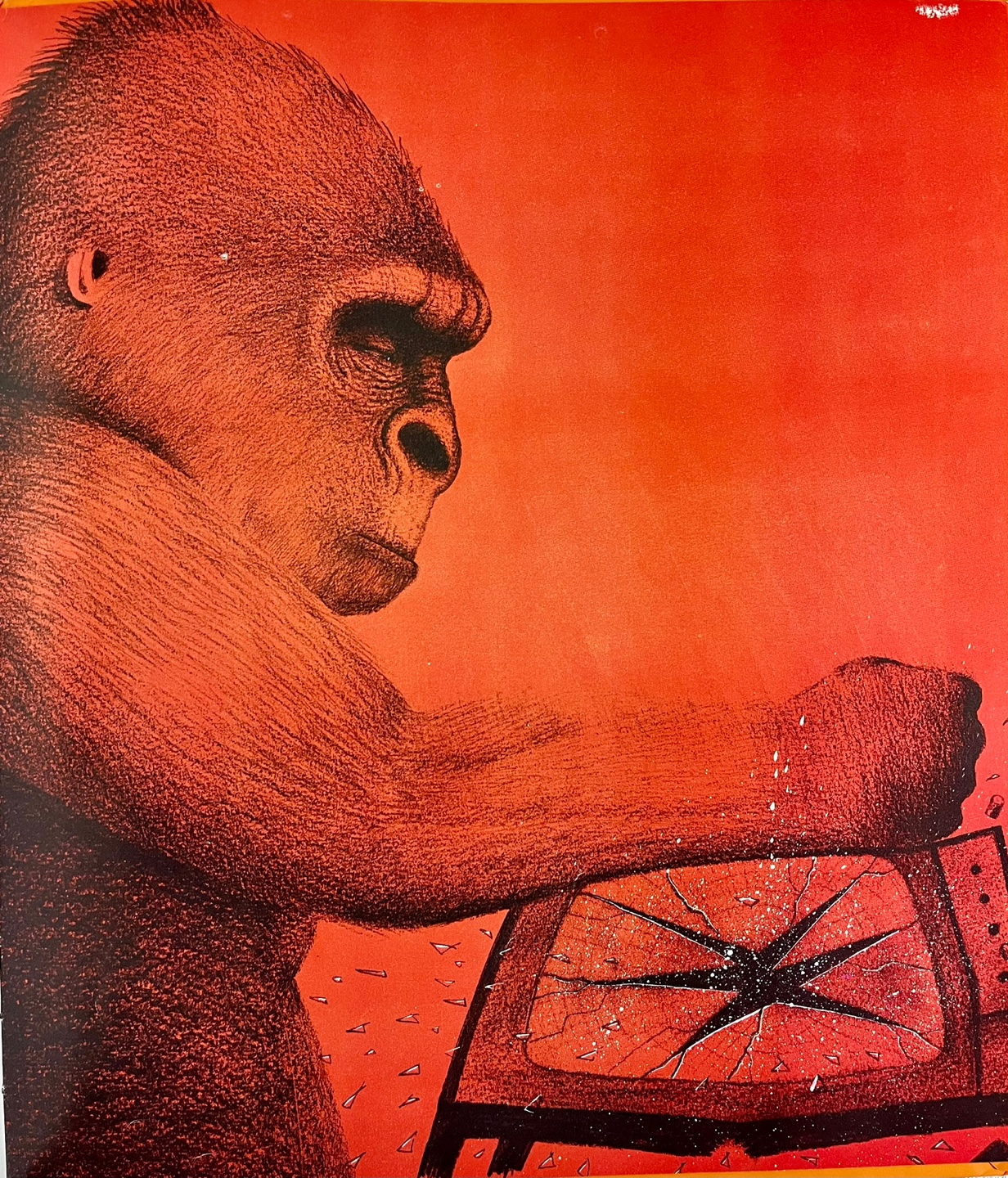 그러나 고릴라의 분노로 TV가 부서지는 와중에도 친구 예쁜이는 두려워하지 않아요. 눈 하나 깜짝하지 않아요.